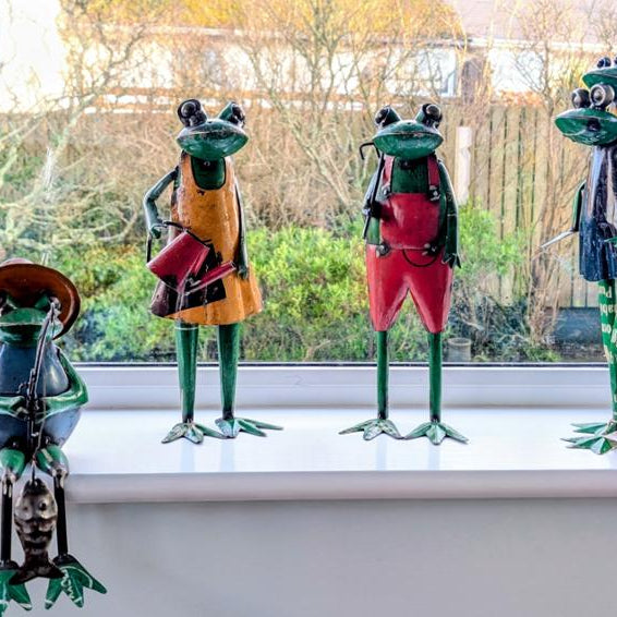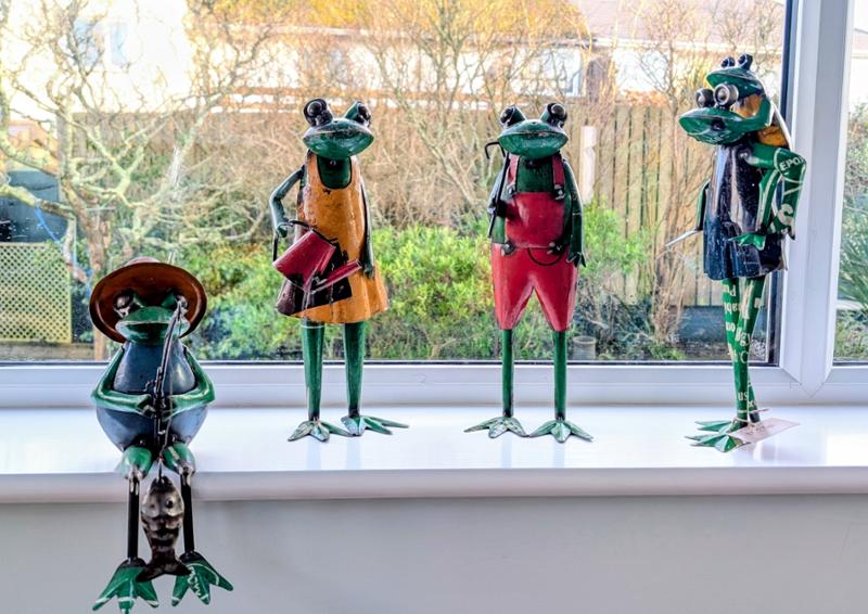 Oh dear! I am becoming addicted to these little recycled frogs. I bought the first one intending it to be a gift, but liked it so much that I kept it. Then I bought a different one for myself as a Christmas present, and then thought I ought to get them another companion. So I now have four. I haven't actually put them outside in the garden but keep them on a long window sill which looks out over the garden. They attract a fair few compliments....