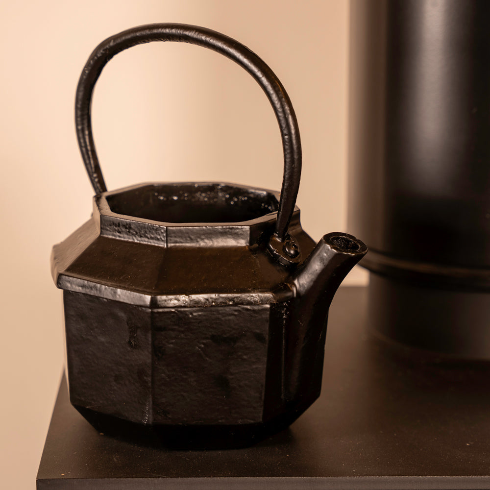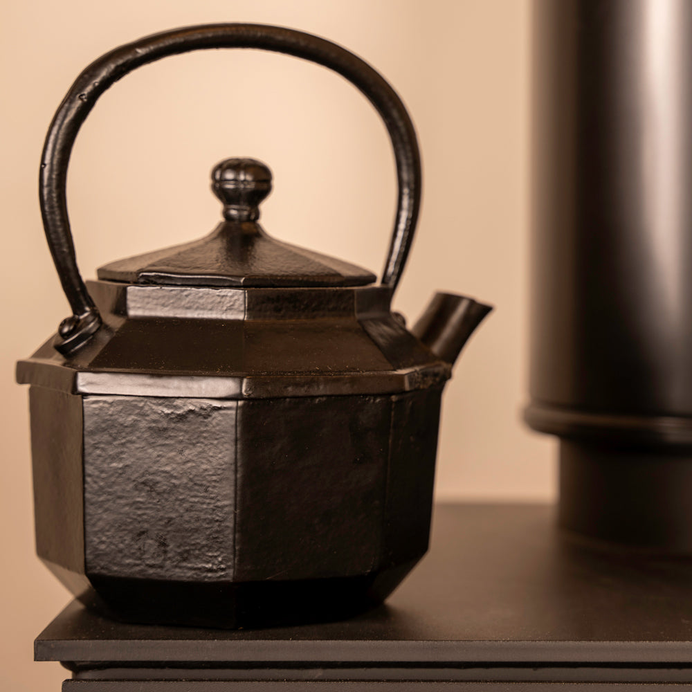 This isn't your average kettle. Made from solid cast iron, this kettle has a unique octagonal shape that gives it a rustic, lantern-like look. It's a solid, heavy duty piece with a simple, practical design.