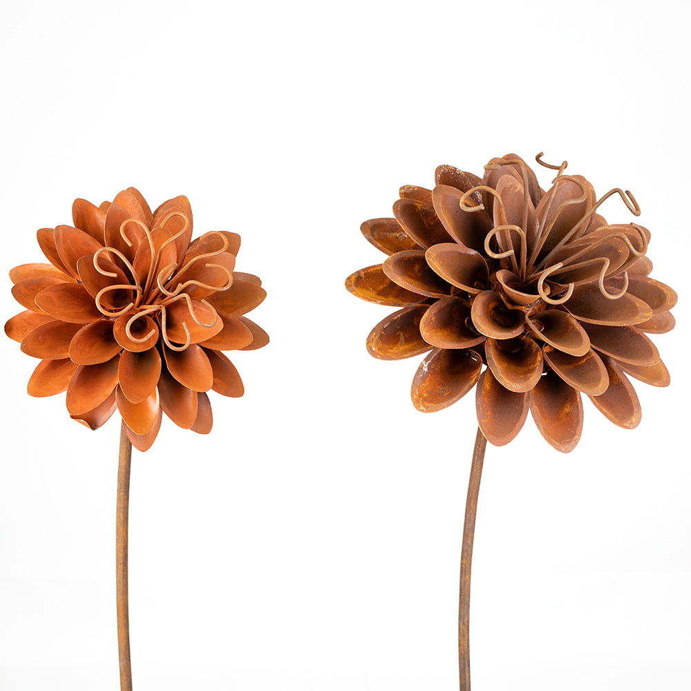 This stake is designed to capture the heavy, layered look of a Dahlia in bloom. The head is built up with several rows of shaped steel petals, giving it a depth and weight that looks realistic from any angle.