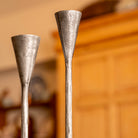 The natural grey finish and elegant, flowing design make these candle holders a versatile addition to any décor, from classic to contemporary.