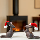 Cast Iron Christmas Mice Pair - Rustic Festive Mantelpiece Décor