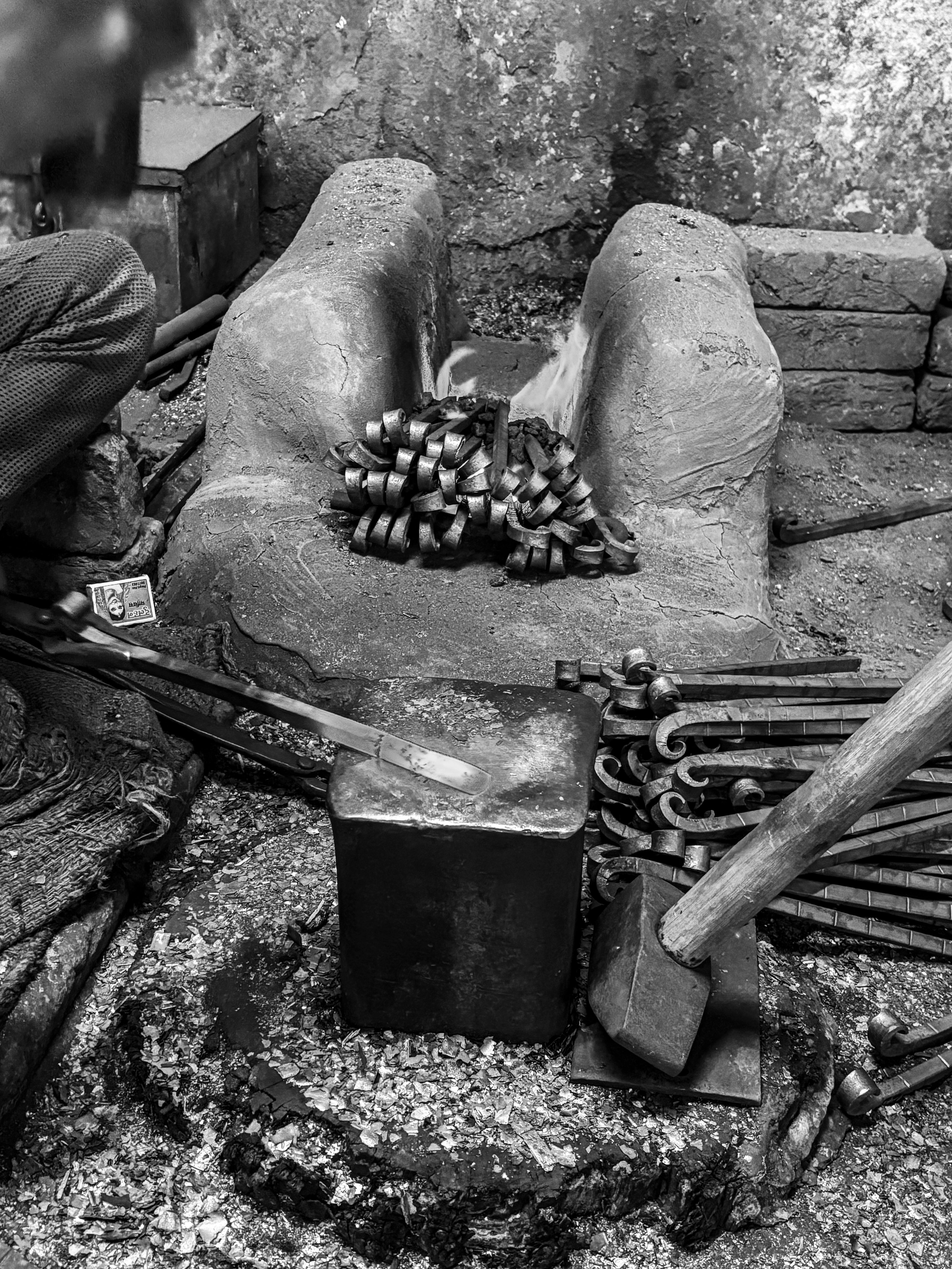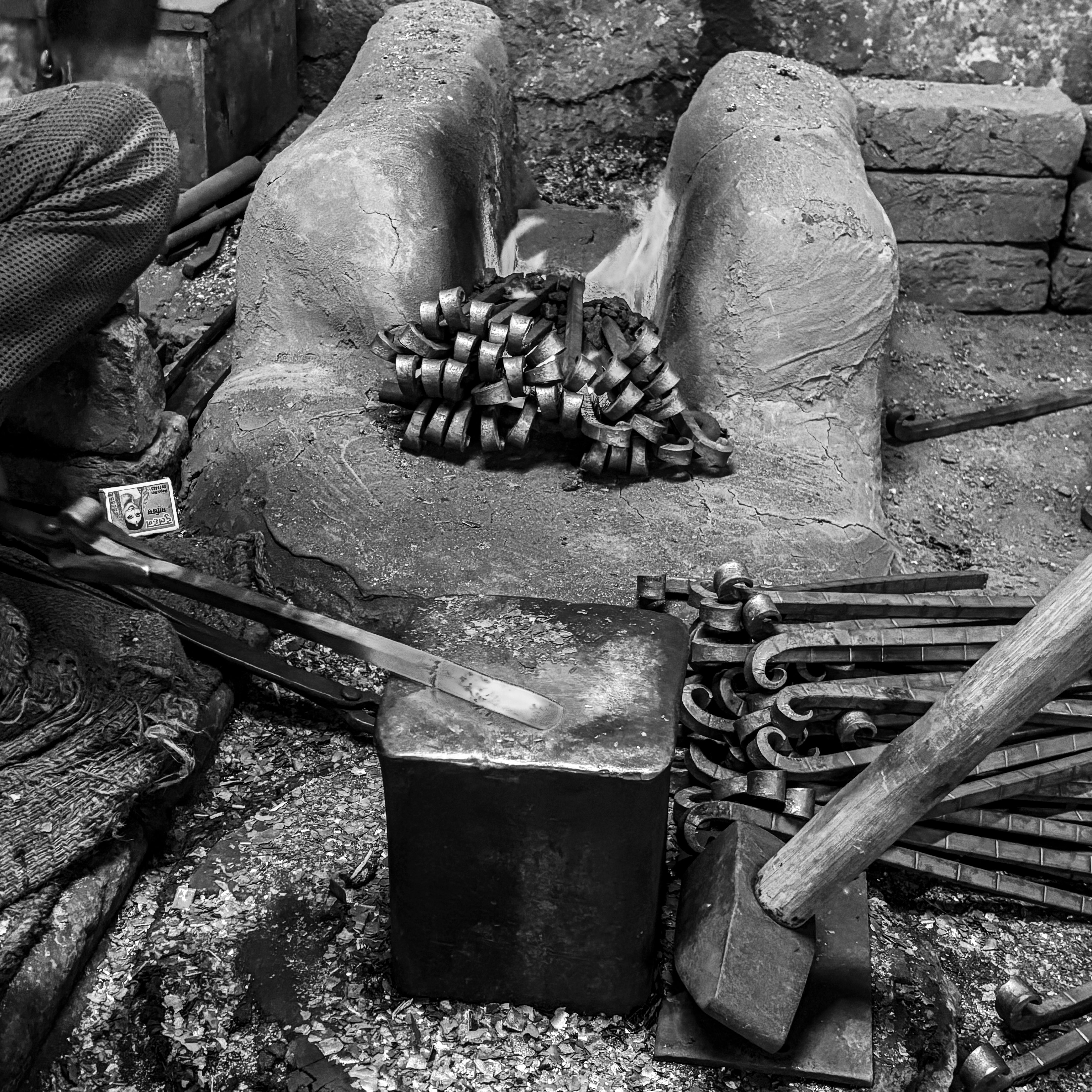 - The blacksmith carefully monitors the heat, often using the colour of the metal as a guide to ensure it is hot enough to work but not so hot that it begins to burn or melt. The correct temperature is crucial for ease of shaping and to maintain the metal's strength and structure.